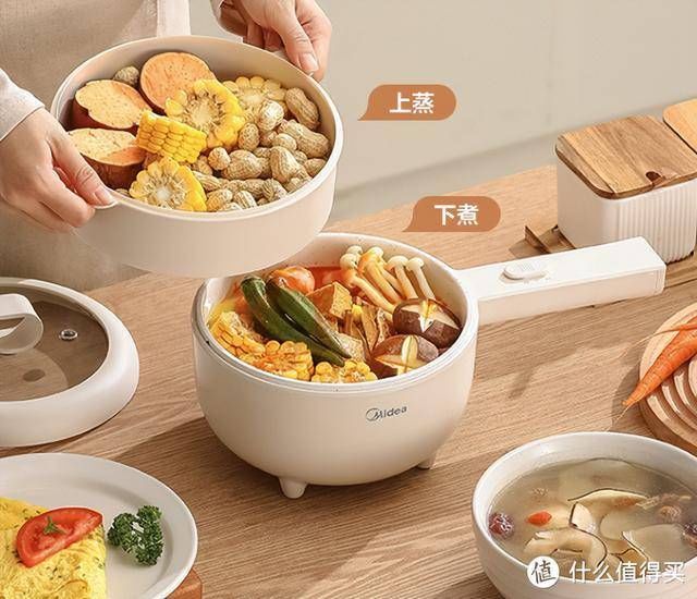 ②美的多功能小电锅——食品级材质一件注塑蒸笼,700W大火力,超温、干烧自动断电。空间虽小,但足够3人食小火锅,鸡蛋泡面随你煮,户外解馋管饱不在话下。